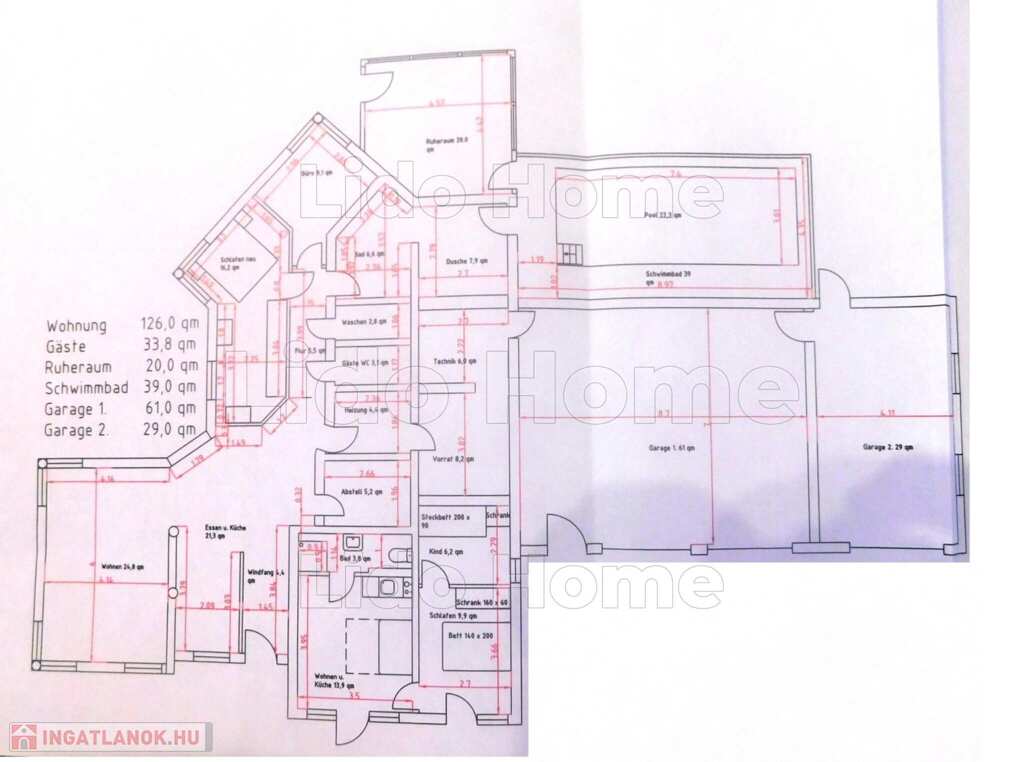 Egyszintes CSALÁDI HÁZ 126 nm-es alapterülettel, plusz 33,8 nm-es apartmannal, úszómedencével, duplagarázzsal és 1 műhelyként is használható garázzsal eladó.