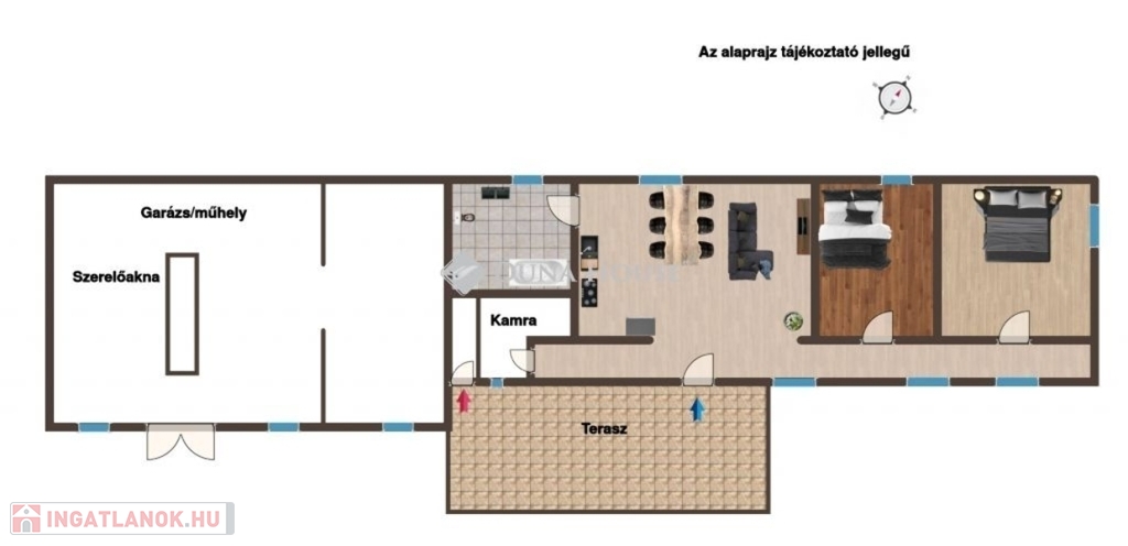 Amerikai konyhás nappali: Tágas, világos központi tér, ahol a konyha és az étkező az otthoni élet központjává válik. Két kényelmes szoba: Ideális méretű hálószobák a pihenéshez.