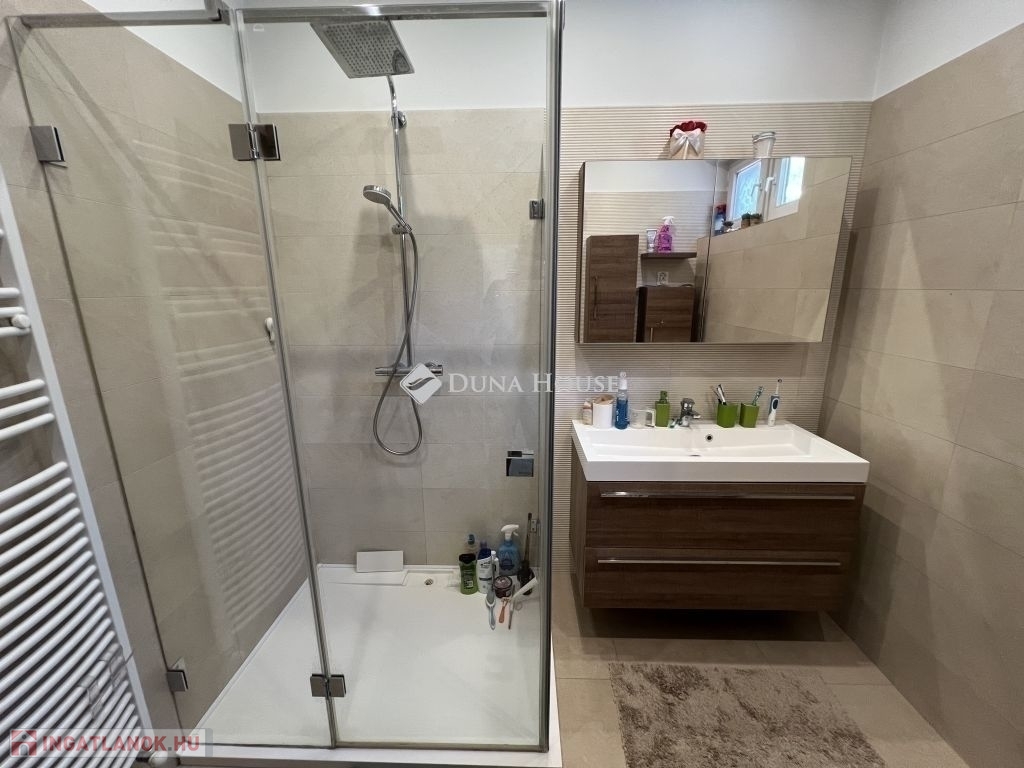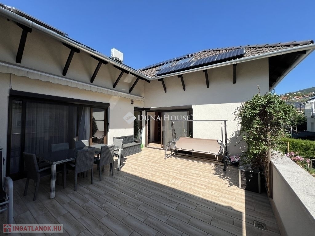 Kivételes lehetőség a Bálicsi úton medencés ház Pécs egyik legkeresettebb részén!Eladásra kínálok egy medencés, háromszintes, 200 m²-es, dupla garázzsal rendelkező sorházat a belvárostól mindössze pár percre, a Bálicsi úton. Az ingatlan ideális választás azok számára, akik értékelik a tágas tereket, a modern kényelmet és a természetközeli életérzést.Az ingatlan főbb jellemzői:Nagy medence, melyből csodálatos panoráma nyílik a TV-toronyra és a Mecsekre.34,45 m²-es keleti tájolású panorámás terasz, amely kiváló helyszín a reggeli kávéhoz vagy baráti összejövetelekhezÁsott kút a kertben, amely az automata öntözőrendszert tápláljaHőszivattyús fűtés (2 éve kiépítve) + tartalék gázkazánSzinte nulla rezsi a korszerű 12,3 kW-os napelemrendszernek köszönhetően (üzembe helyezés: 2022.12., szaldó: 2032.12-ig, 2024-ben 12,6 MWh termelés!)5 szoba és 2 fürdőszobaGondozott díszkert és konyhakert kertész által karbantartvaModern elektromos hálózat: új konnektorok, biztosítékok kint és bent, 3x20A teljesítményElektromos redőnyökNagy sebességű LAN hálózat minden szobában kiépítveKlímák a tetőtérben, a ház alsó szintje nyáron is kellemes hőmérsékletű, így légkondi nélkül használhatóPrémium LED design világítás minden helyiségbenEz az ingatlan egyszerre kínál luxust, kényelmet és költséghatékony fenntarthatóságot. A keletre néző terasz egész nyáron hűvös, a hatalmas medence pedig garantálja a nyári kikapcsolódást.