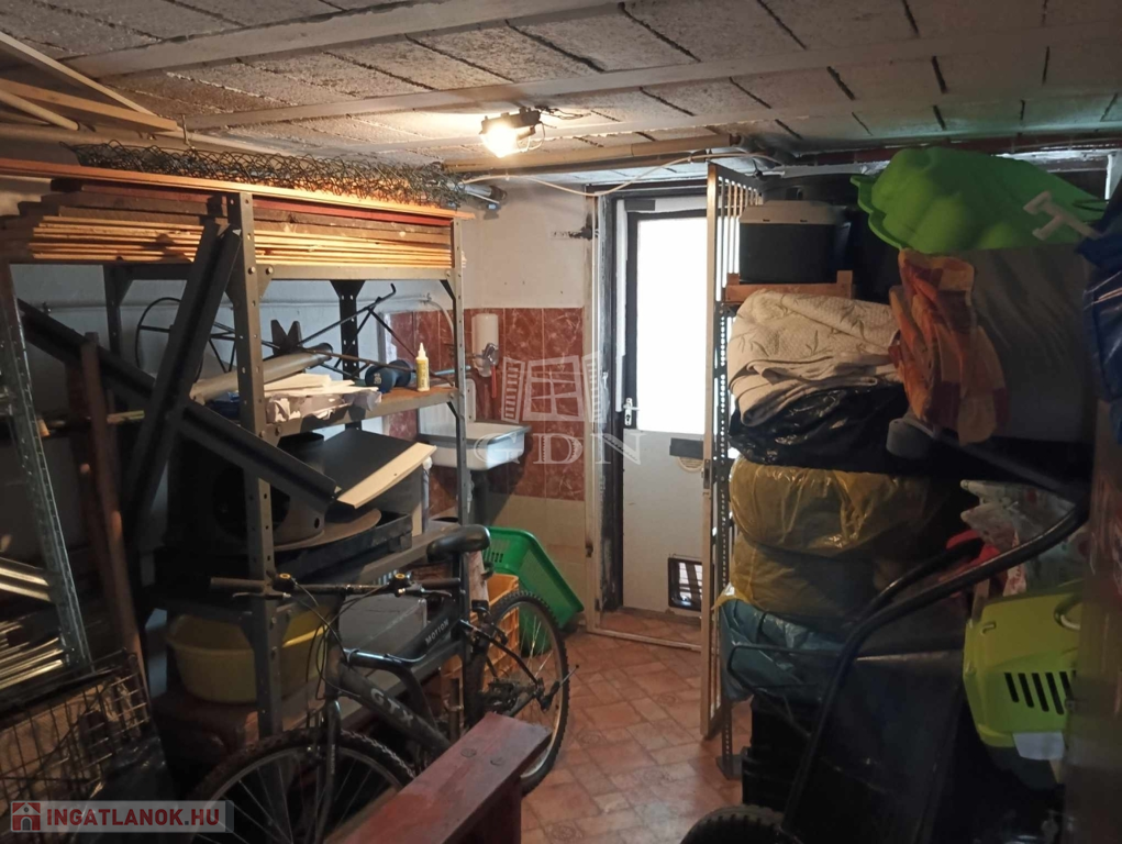 84 m2 hasznos alapterület, átlagos belmagasság, + 43 m2 garázs + tároló + kazánház + kamra.
