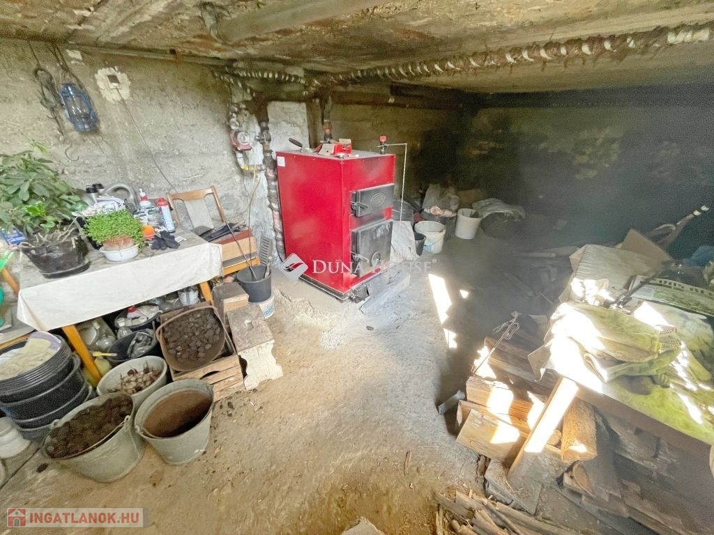 Az épületben három tágas lakószoba, méretes előtér, konyha-étkező, nagy méretű, akár szobává alakítható kamra, fürdőszoba és külön wc van kialakítva. A bejárat egy fedett terasz felől nyílik, a ház részben alápincézett. A fűtést egy szinte új, három éve beüzemelt vegyes tüzelésű kazán biztosítja, radiátoros hőleadással, ezt kiegészítve az egyik szobában egy kandalló is üzemel, a meleg vizet villanybojler biztosítja. Az ingatlan lakható állapotú, műszaki és esztétikai korszerűsítése már időszerű.