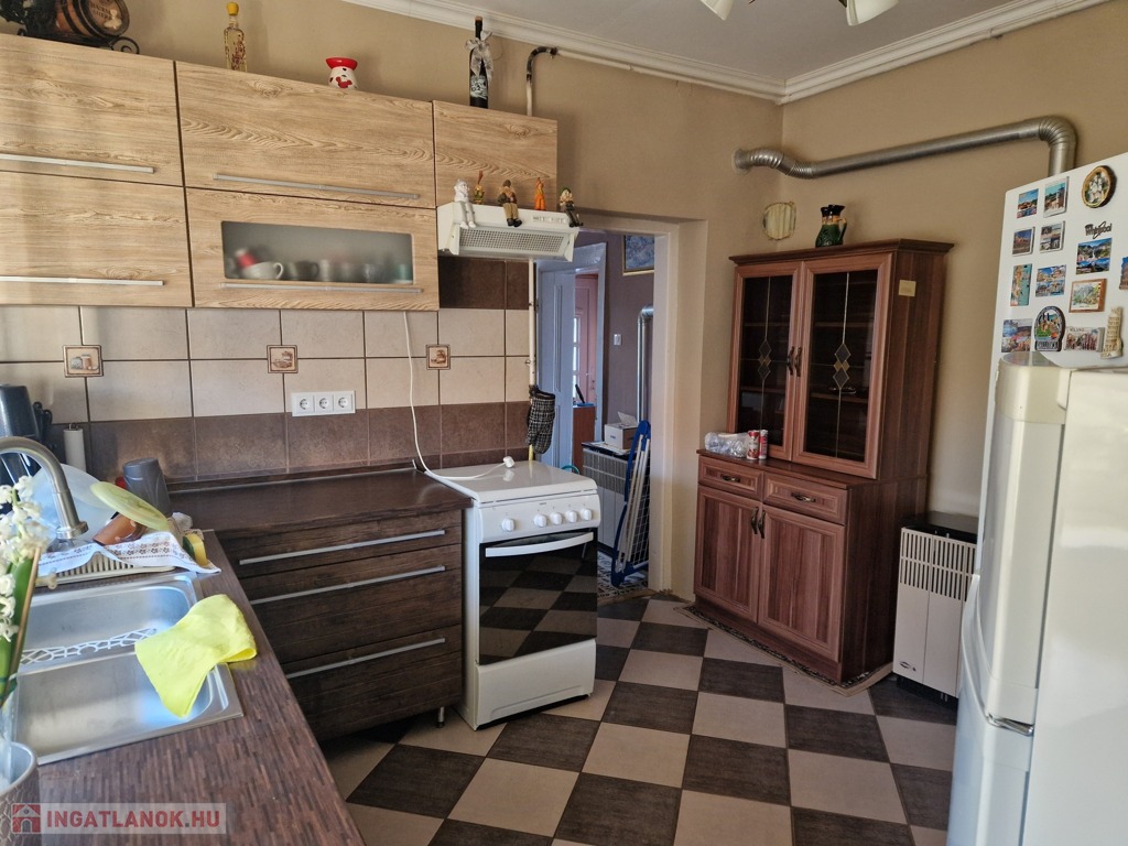Helyiségek: előszoba, ebédlő (ami akár külön szobává is alakítható), konyha (beépített konyhabútorral), fürdőszoba-WC, spájz, 2 és fél szoba, padfeljáró (külön bejárattal), innen található meg a pincebejárat is.