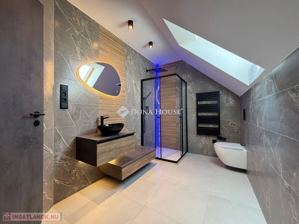Az ingatlan ötletes kialakítású, igényes, minőségi burkolatok és szaniterek lettek beépítve,.extra megoldásokkal kombinálva, műszaki tartalma átlagon felüli.