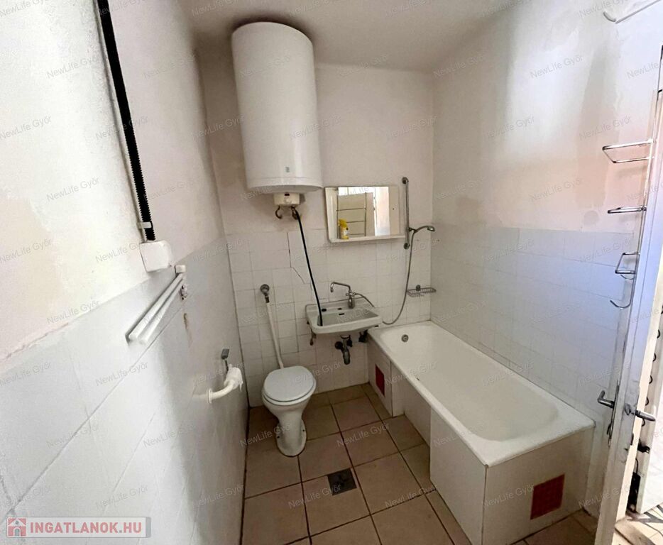 A mosdó a fürdőben található, káddal és a gázkazánnal együtt.