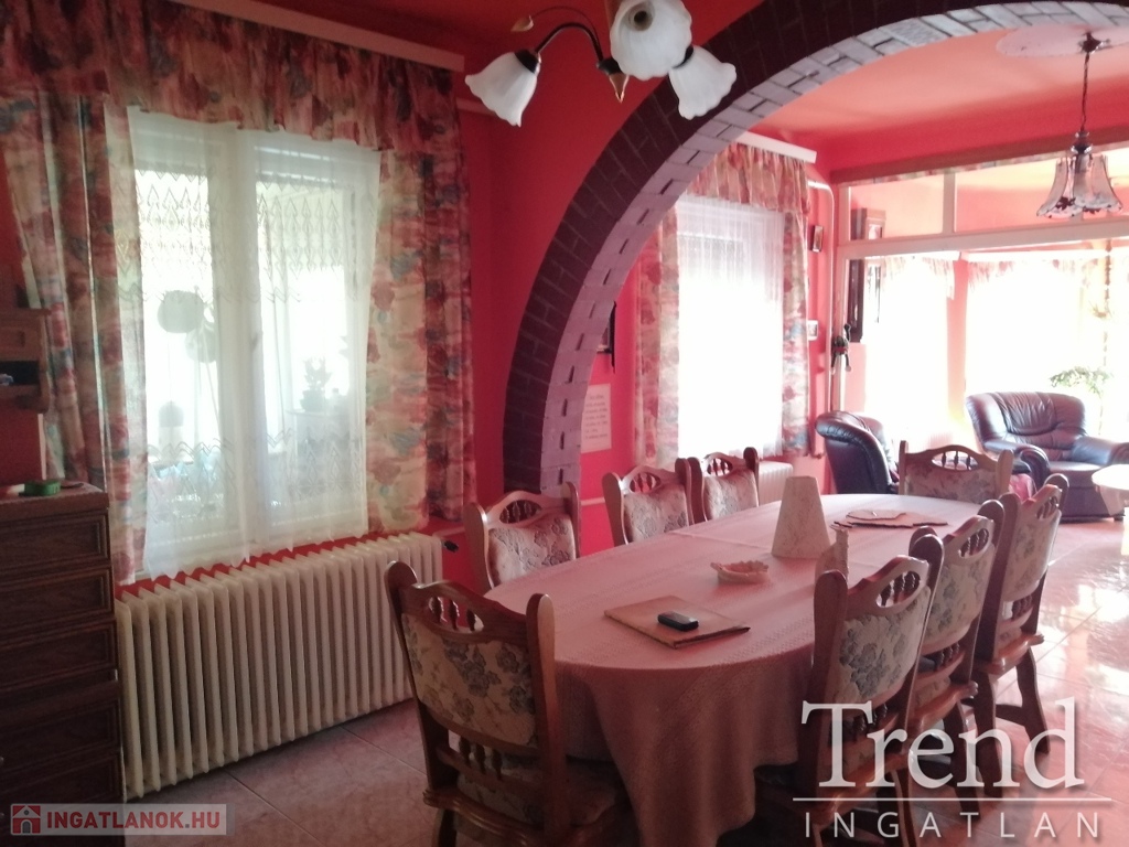 Solton az iskola sz omszédságában eladó, 706nm-es körbe kerített telken, 120nm-es 4 szoba+nappalis vegyes falazatú családi ház. A telek körbe kerített, parkosított. A ház az évek során felújításra került. Nagy előszobájából közelíthető meg a tágas, nagy nappali, innen a két nagyobb szoba. Konyhája sem kicsi, tartozik hozzá még egy kamra is. Fürdőszobában dupla mosdókagyló került beépítésre, zuhanykabin és a wc. Másik két szoba egybe nyílik. Tágas nagy teraszon még egy plusz wc, kézmosóval is kialakításra került.