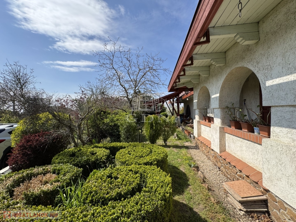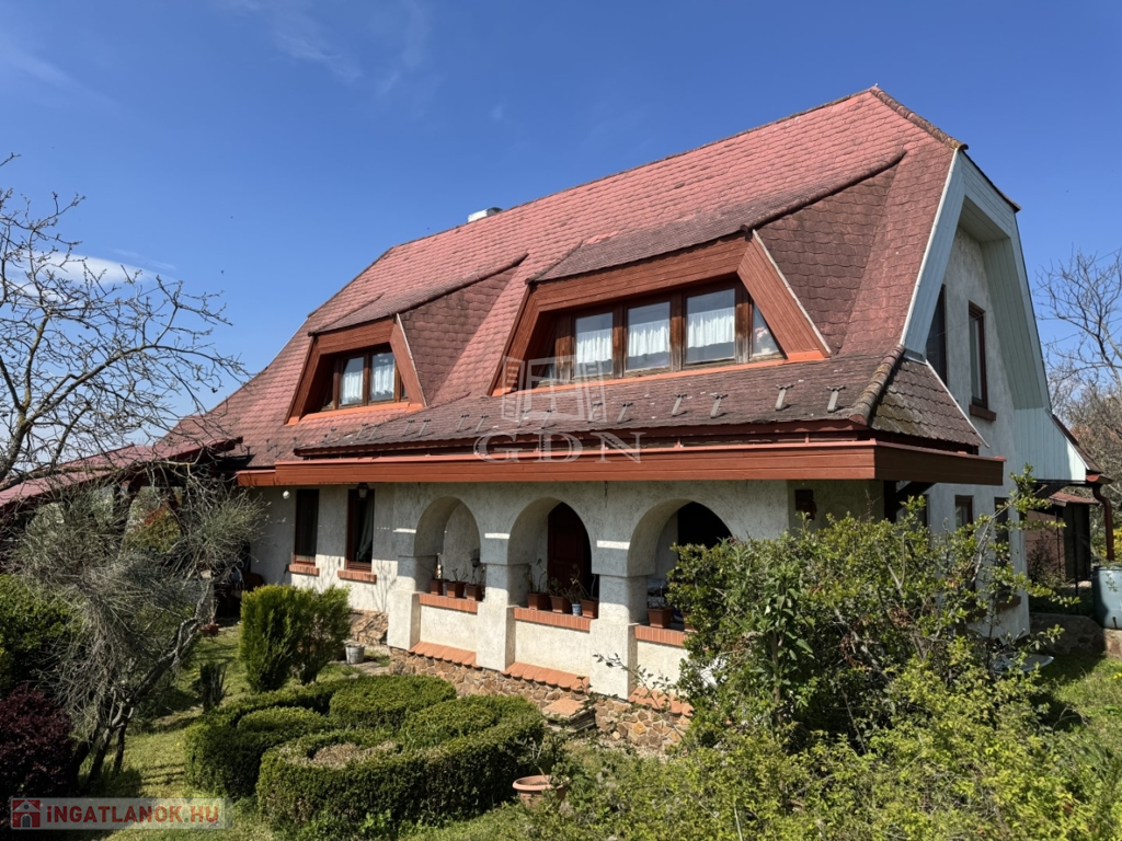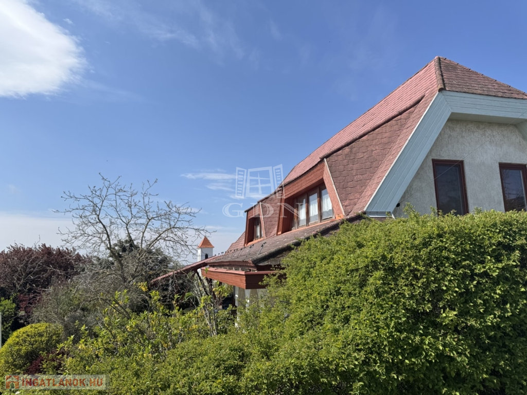 Vh-004412 Sukorón, átmenő forgalomtól mentes, rendezett utcában 235m2 hasznos alapterületű, 3 szintes, impozáns és rusztikus hangulatú, a Velencei-tóra panorámás kilátású családiház 1249m2-es telken parkosított telken eladó!