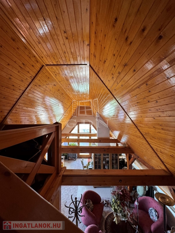 A tetőtér beépített, galériás, lambériás minden része. Fürdőszoba, hálószoba és egy nagy nappali található ezen a szinten. A nappali részből nyílik egy 17m2-es erkély is.