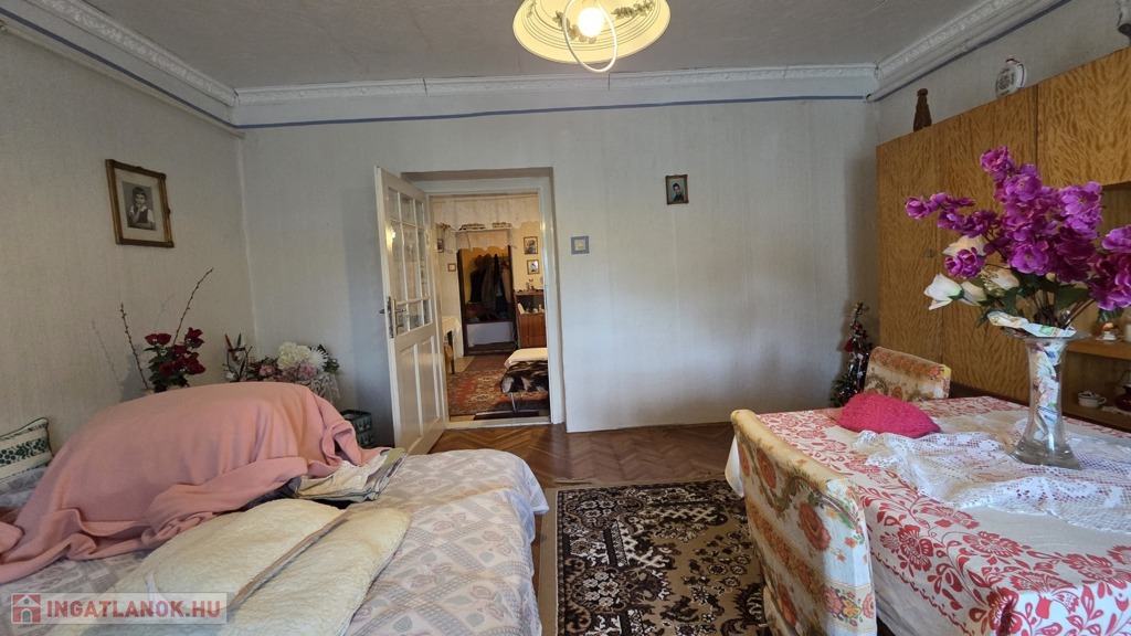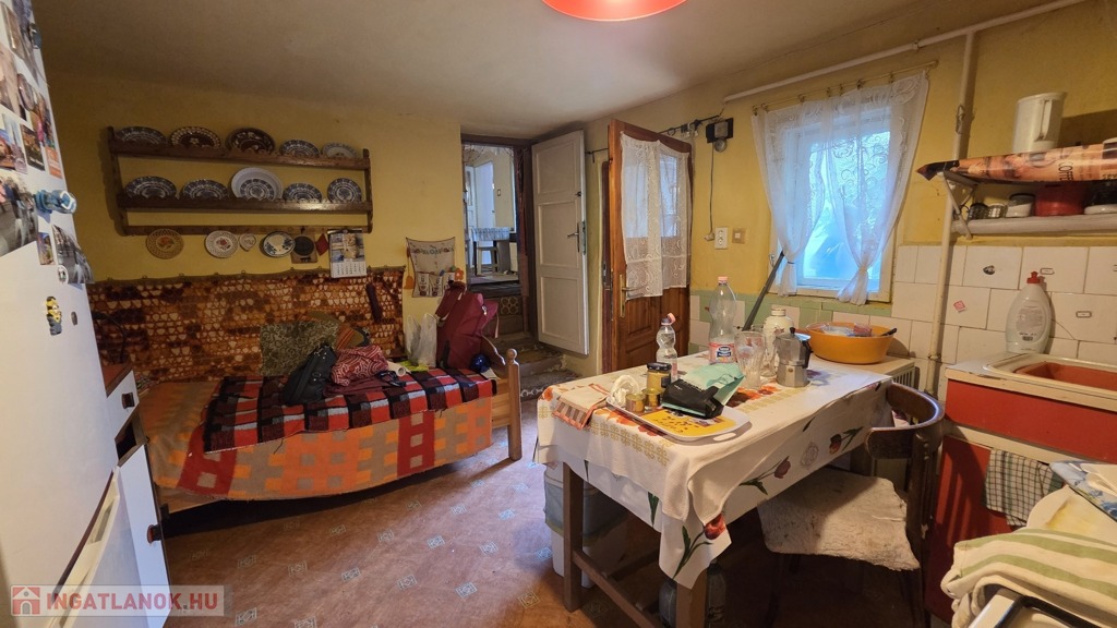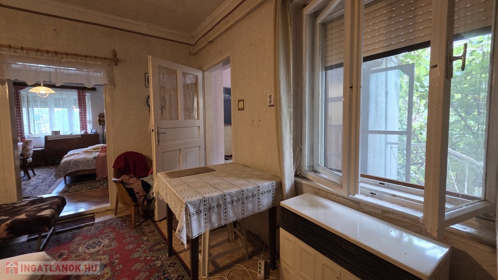 A háromszobás épület kő és tégla falazattal, cseréptetővel és klasszikus parkettás burkolattal rendelkezik. A konyha két lépcsőfokkal mélyebben helyezkedik el, amely kiváló alapot nyújt egy teraszkapcsolatos konyha kialakításához. Két különálló udvari bejárattal rendelkezik az ingatlan ami lehetővé teszi a praktikus elrendezést és akár több funkciós használatot is.