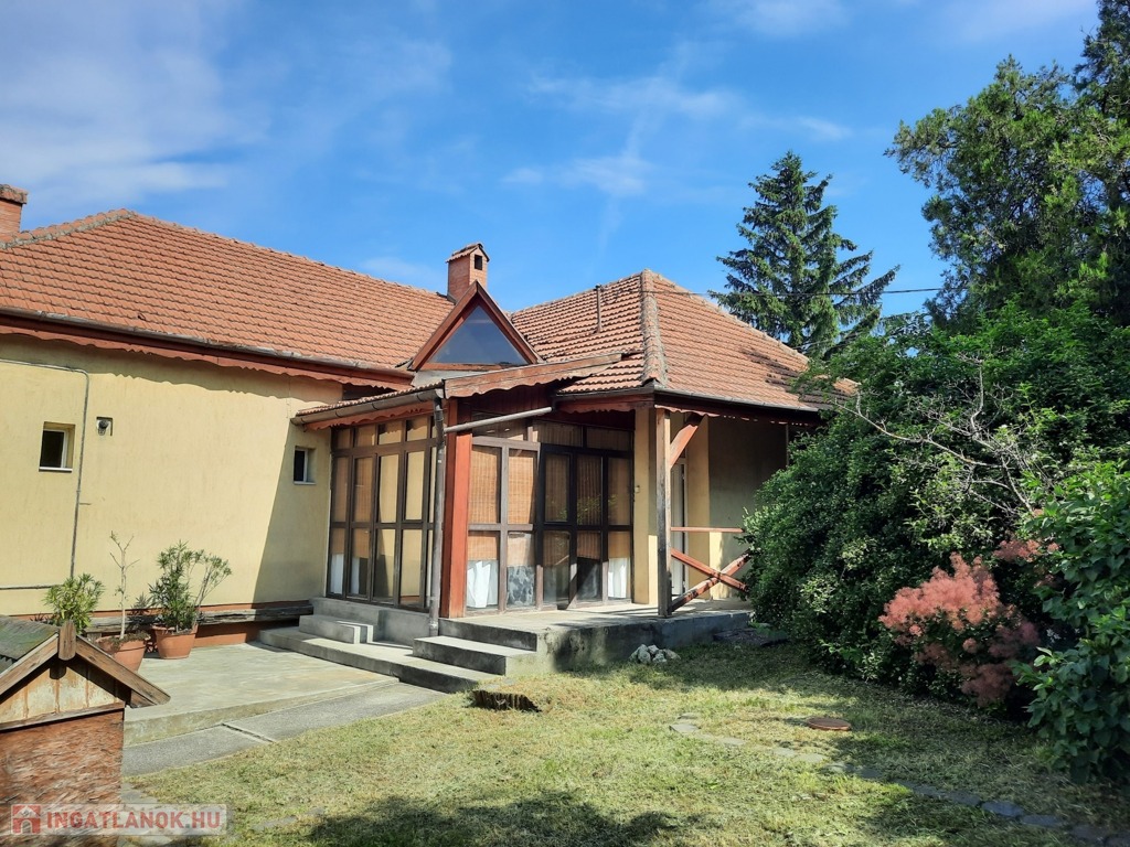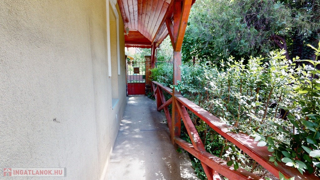 Az ingatlan egy szépen gondozott parkosított udvaron helyezkedik el, két bejárattal. A hátsó bejáratot egy elektromos kapu biztosítja, így autóval kényelmesen beparkolhatunk a két beállású garázsba.