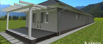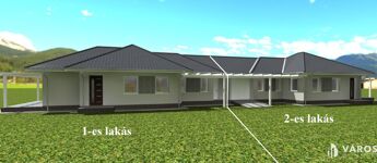-bruttó 122nm-es ikerház( 3 lakószobával,2 fürdőszobával(duplakomfortos), tárolóval, közlekedővel és amerikai konyhás nappali(16nm-es fedett terasz, 12nm-es garázs és 95nm-es lakóingatlan
