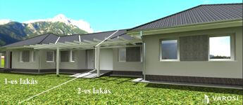 A telek jobb oldalán a bejutást biztosító szolgalmi út lesz kialakítva az első és a második lakás részére.