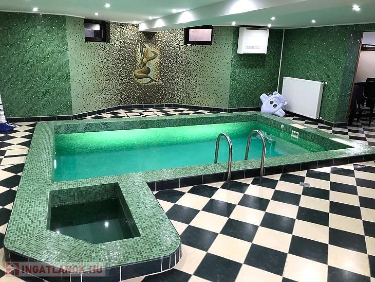 - Az alsó szinten kialakításra került egy nagy méretű garázs, amely 2-3 autónak biztosít beállási lehetőséget. Ezenkívül plusz Wellness részleg is van, ami minden igényt kielégíthet. - Medence, konditerem, fürdőszoba, mosókonyha, 6 fős szauna és egy 5 fős jakuzzi is.