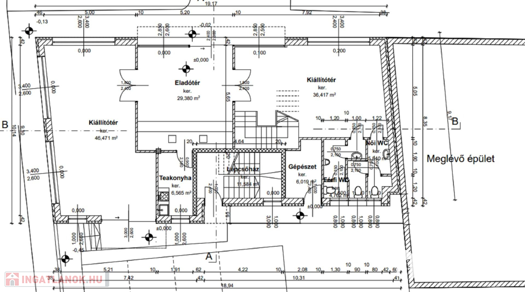 Gondosan ügyeltek a vendégtér, üzlethelyiség maximális kihasználhatóságára, szociális helységek és az irodák megfelelő elhelyezésére.