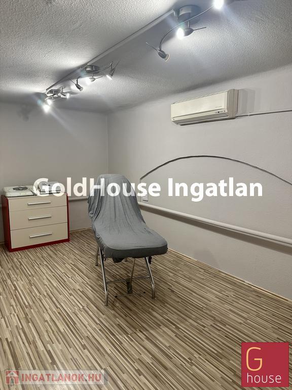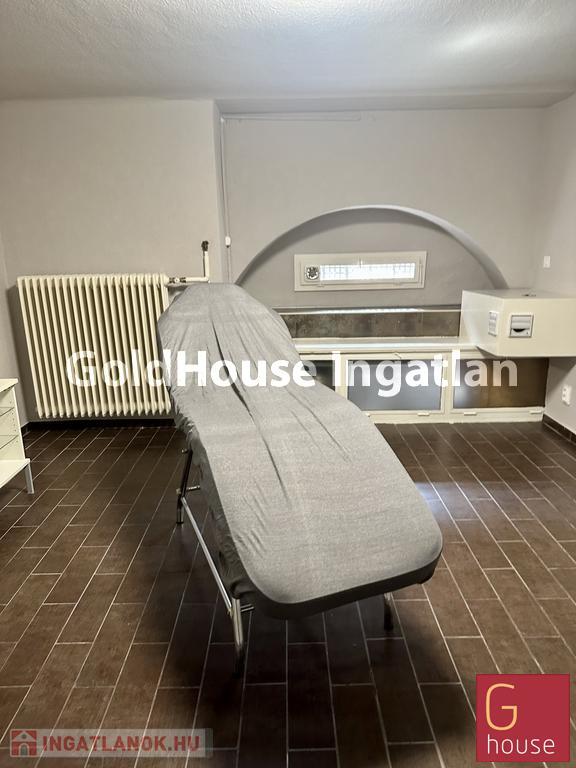 Az emeleten 5 kezelőszoba, zárható, csendes, vízzel ellátva, nagy előtér, mosási lehetőséggel.