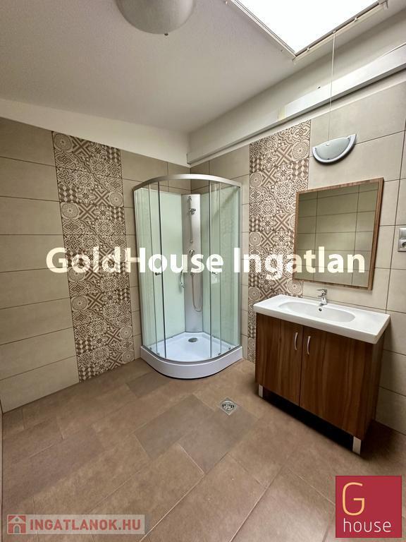 Az első emeleten található helyiség teljes alapterülete 100 m², a tető lejtős kialakítása miatt a hasznos terület 60 m², amely ideális méret kisebb irodai csapatok vagy szolgáltatói tevékenységet végző vállalkozások számára.