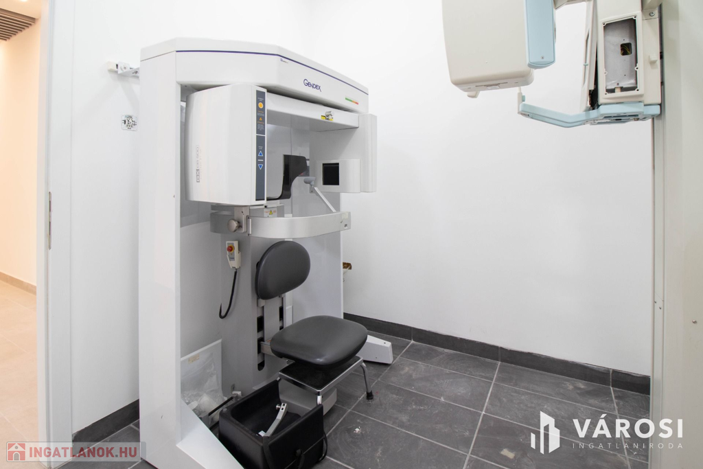 A komplexumban egymás mellett 6 rendelő kiadó, ez a rendelő 25 m2 alapterületű, teljesen felszerelt, Optimal 09 kezelőegységgel, fogászati eszközökkel és rendelői bútorzattal ellátott.