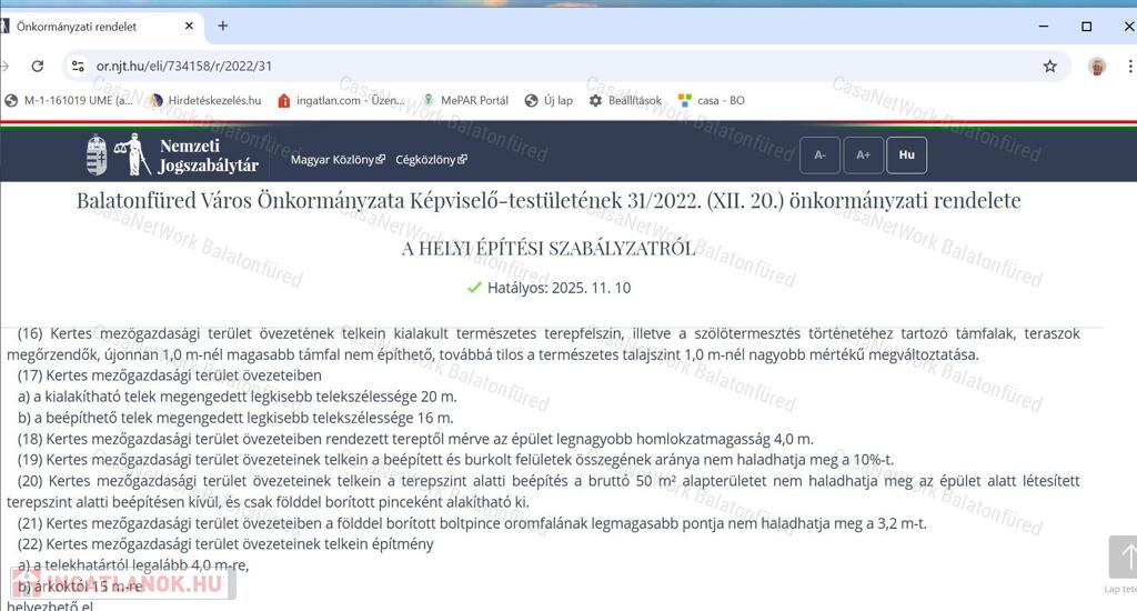 A CASANETWORK BALATONFÜRED Ingatlaniroda eladásra kínálja a 2179 számú, kiváló lehetőségekkel bíró szőlővel betelepített,építhető területét Balatonfüreden
