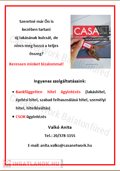 Amennyiben a CASANETWORK BALATONFÜRED Ingatlaniroda által kínált 2375 számú kertes mezőgazdasági terület, vagy bármely kínálatunkban található INGATLAN felkeltette érdeklődését, kérem, hívjon a megadott számon.