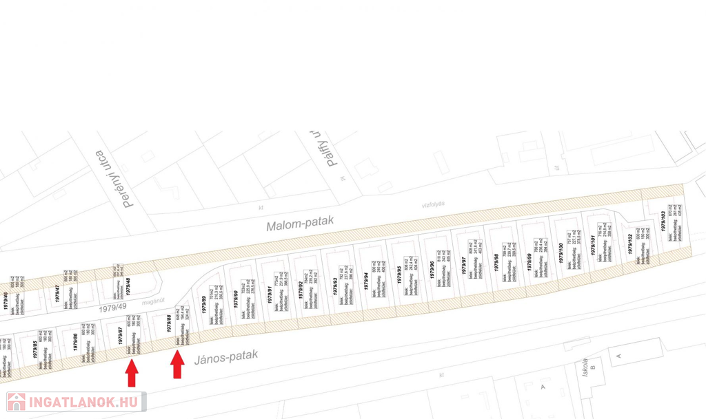 Csak önálló ház építhető – ikerház és társasház nem engedélyezett.