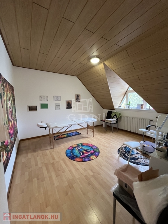 A földszinten melynek hasznos alapterülete: 106,6 nm + 40 nm terasz, és a pinceszinten 103,2 nm működik az ételbár, a tetőtérben egy 82,3 nm alapterületű lakás van kialakítva.