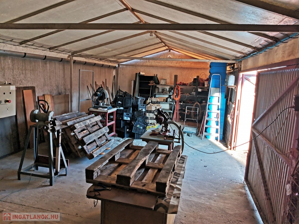A ház mögötti részen, annak folytatásaként épült egy 170nm-es tégla raktár, majd egy 160nm-es, beton aljzatra épített könnyűszerkezetes raktár, bennük kis irodával, a tárolásra alkalmas polcokkal, rakodóhelyekkel, ipari árammal ellátva.