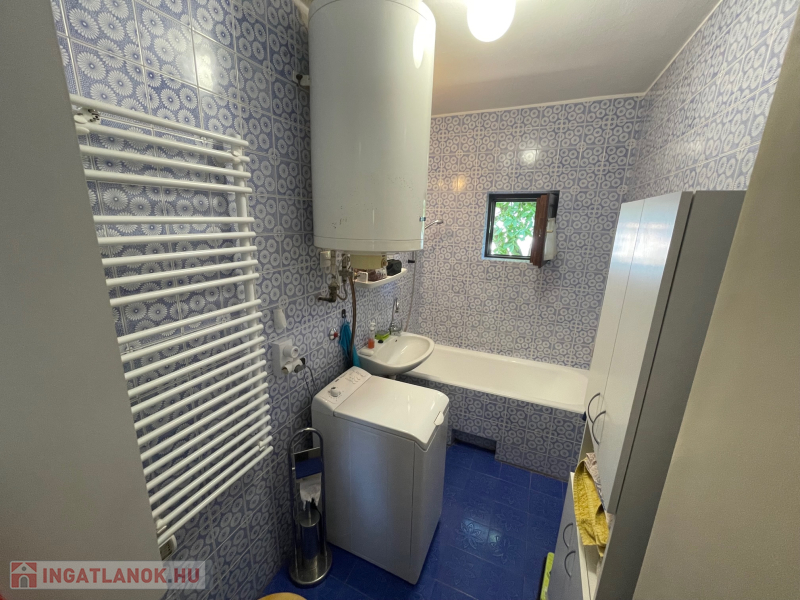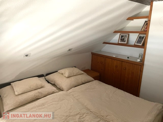 Helyiségei: a földszinten egy amerikai konyhás nappali és egy kádas fürdőszoba került kialakításra. A nappaliba a 14,4 m2-es déli tájolású teraszról lehet belépni. A tetőtérben 2 hálószoba található, az egyik erkélykapcsolatos. A külön külső bejárattal rendelkező 10 m2-es tárolóból (korábban garázs volt) közelíthető meg a 14 m2-es, ablakos pince, amely tökéletes megoldást nyújt a kertben termő gyümölcsök tárolására.