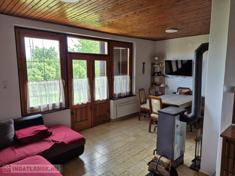 A nyolcvanas években épült ház homlokzata szigetelt (8 cm), a tető betoncseréppel fedett, nyílászárói fa gyártásúak, zsalugáterekkel ellátottak. Klíma is elhelyezésre került. Fűtését a nappaliban elhelyezett kandalló és infrapanelek biztosítják.