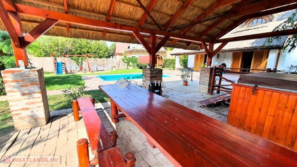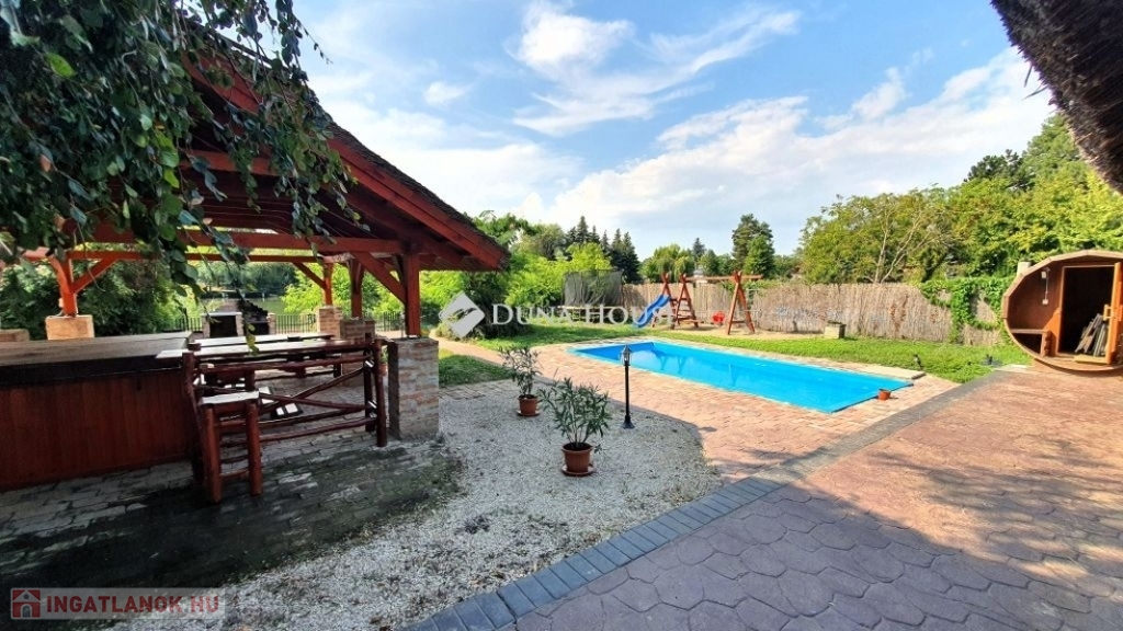 Eladó vízparti nyaraló Békésszentandráson!Békésszentandrás és Szarvas üdülőövezetében az Arborétum soron, közvetlen vízparton teljes berendezéssel együtt eladó egy 170 m²-es, két külön lakrészből álló, 10-12 férőhelyes nyaraló, saját stégekkel és prémium felszereltséggel.Főbb jellemzők:* 6 hálószoba, 2 fürdőszoba* Medence, fedett jakuzzi, szauna* Tágas, dupla telek, széles vízpart, 2 db. saját stég* Modern konyha, nagy közösségi terek* Játszótér, grillező, fedett terasz, rendezett kertMiért ideális választás?Befektetőknek: magas kihasználtság és bevételi potenciál, kiváló vendégértékelések (vezető szálláshirdető oldalakon 8.8/10 és 9.2/10).Magáncélra: nyugodt környezet, teljes kikapcsolódás, négy évszakos használhatóság.A nyaraló az azt üzemeltető céggel együtt eladó, amennyiben csak az ingatlant vásárolja meg, az árat 27%-os ÁFA terheli.