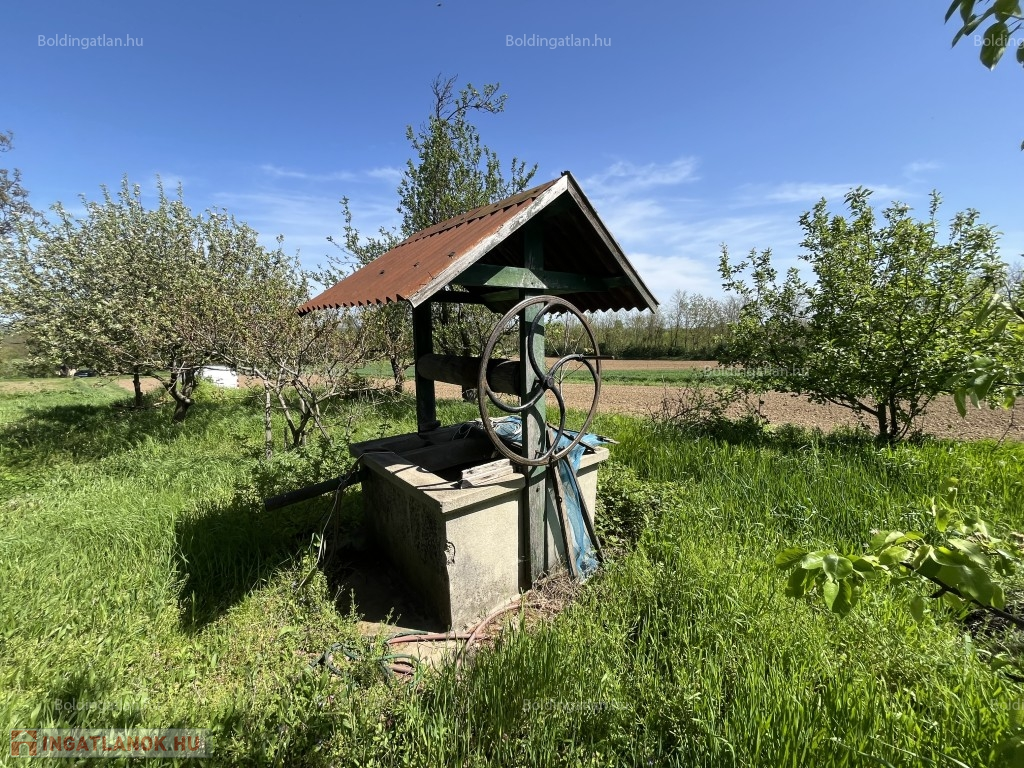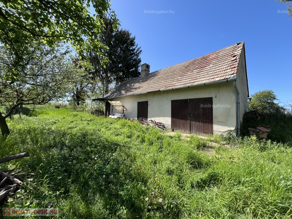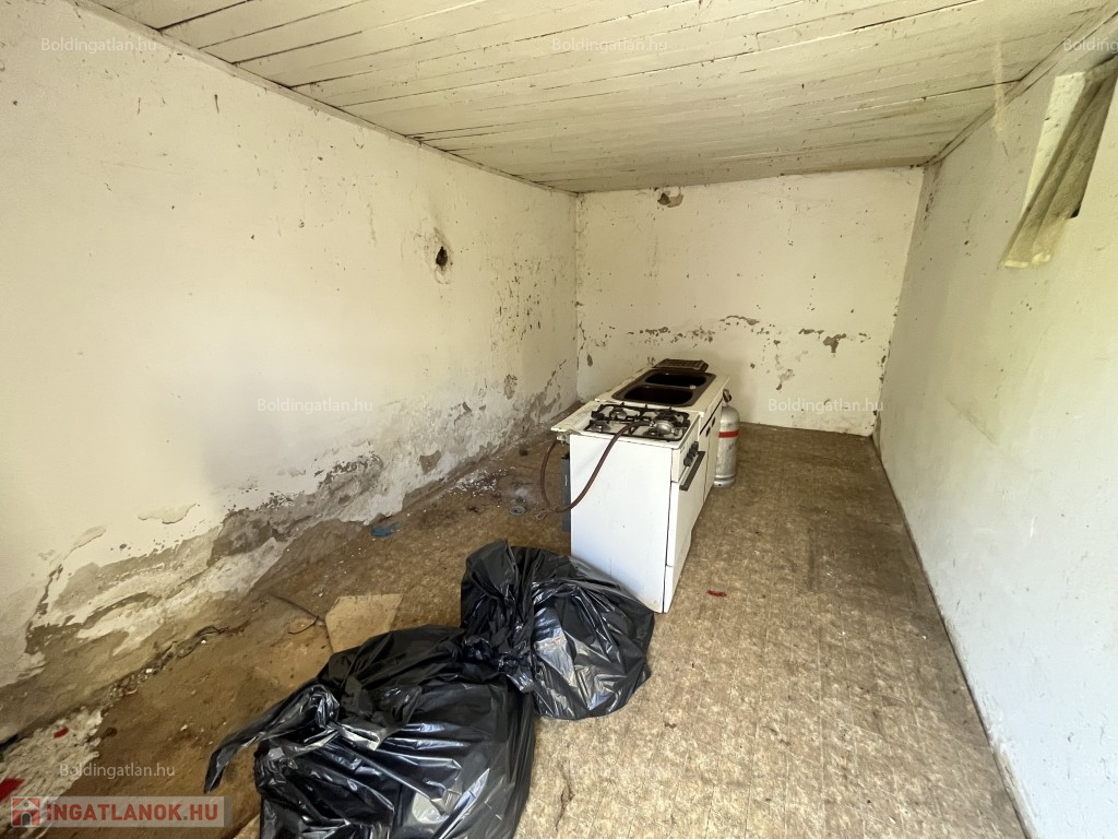 Kéthelyen - a Balaton közelében, csendes helyen - zártkerti övezetben - 56 m2-es hétvégi ház - a képeken látható műszaki állapotban eladó. A tégla épületben 2 szoba, konyha és egy akár garázsnak használható helyiségek található, illetve ebből a garázsból egy boltíves 15 m2-es pince is nyílik. Víz a telken lévő kútból használható, villany nincs. Telek: 1.902 m2