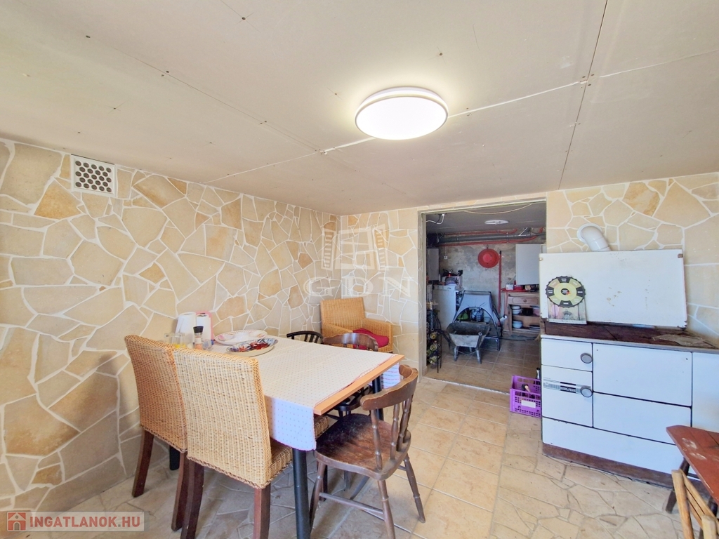 Az alsó szinten találjuk a konyha- étkezőt, valamint a jelenleg tárolásra használt pincerészt, továbbá egy külön bejáratú fatároló is rendelkezésünkre áll.